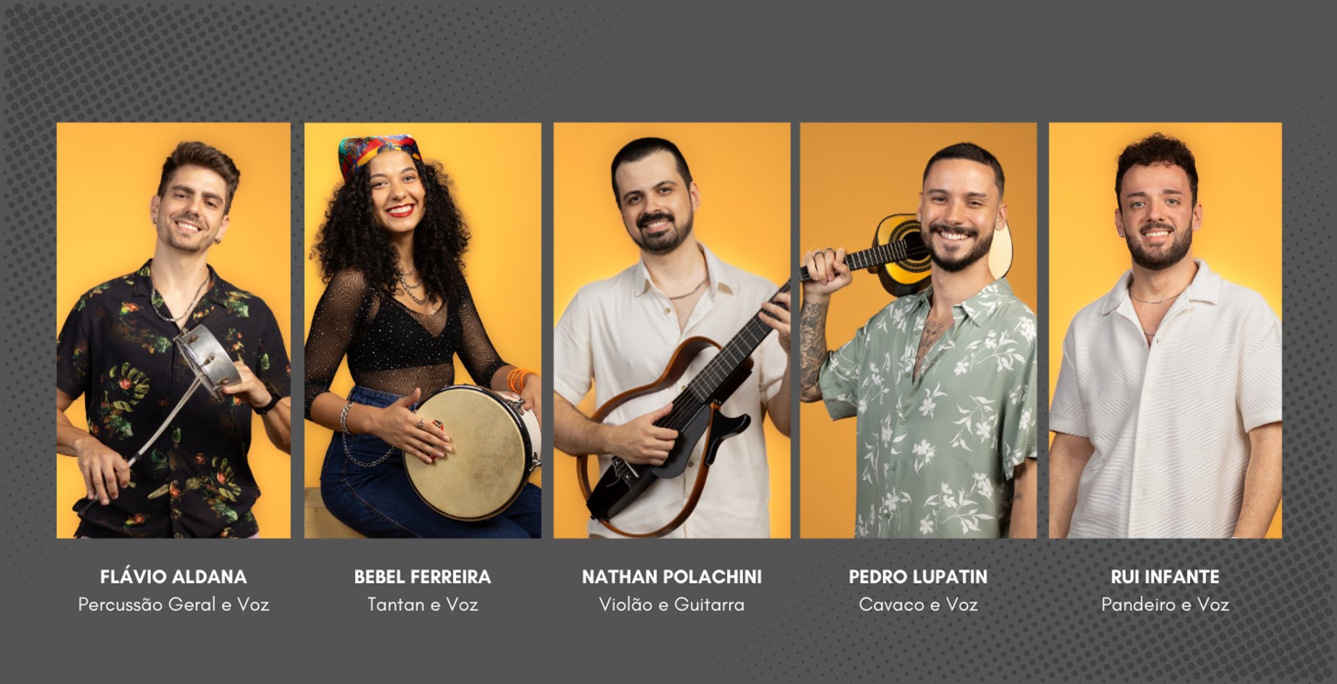 Nosso repertório é pensado para animar, agradar e envolver o público. Afinal, é difícil ficar parado quando se escuta aquele hit preferido no formato mais vibrante que há: o samba!